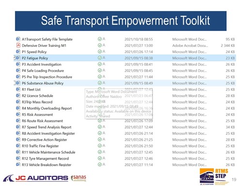 Large/corporate transport sector well resourced i.t.o risk management/safety systems