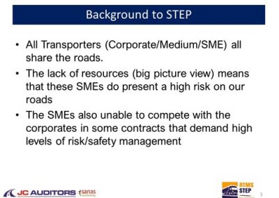 The lack of resources (big picture view) means that these SMEs do present a high risk on our roads